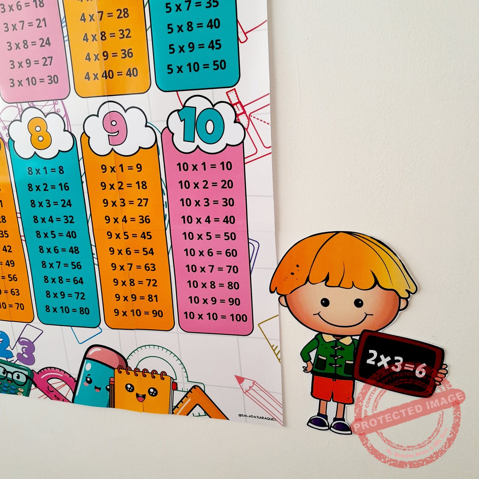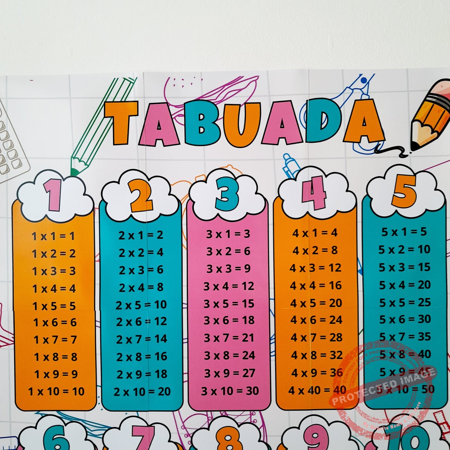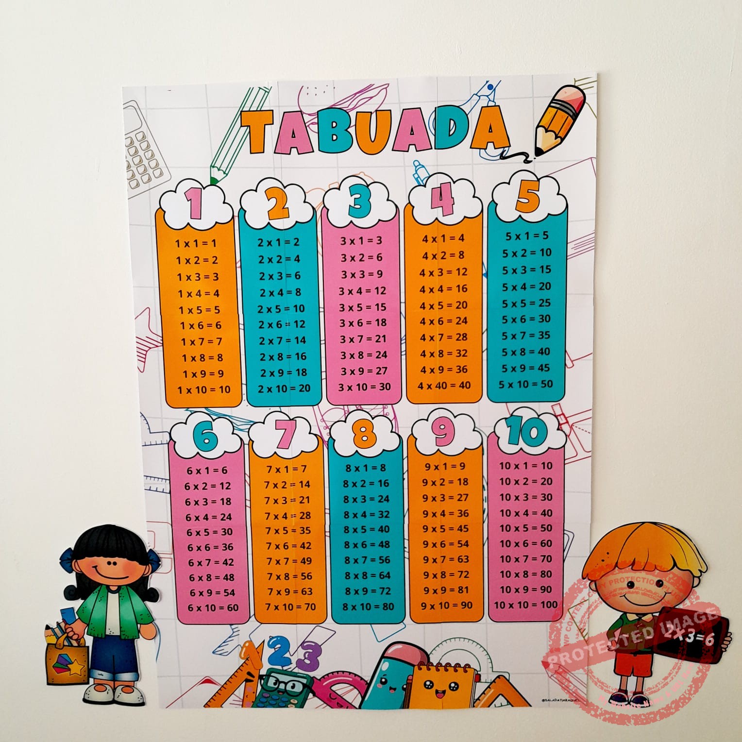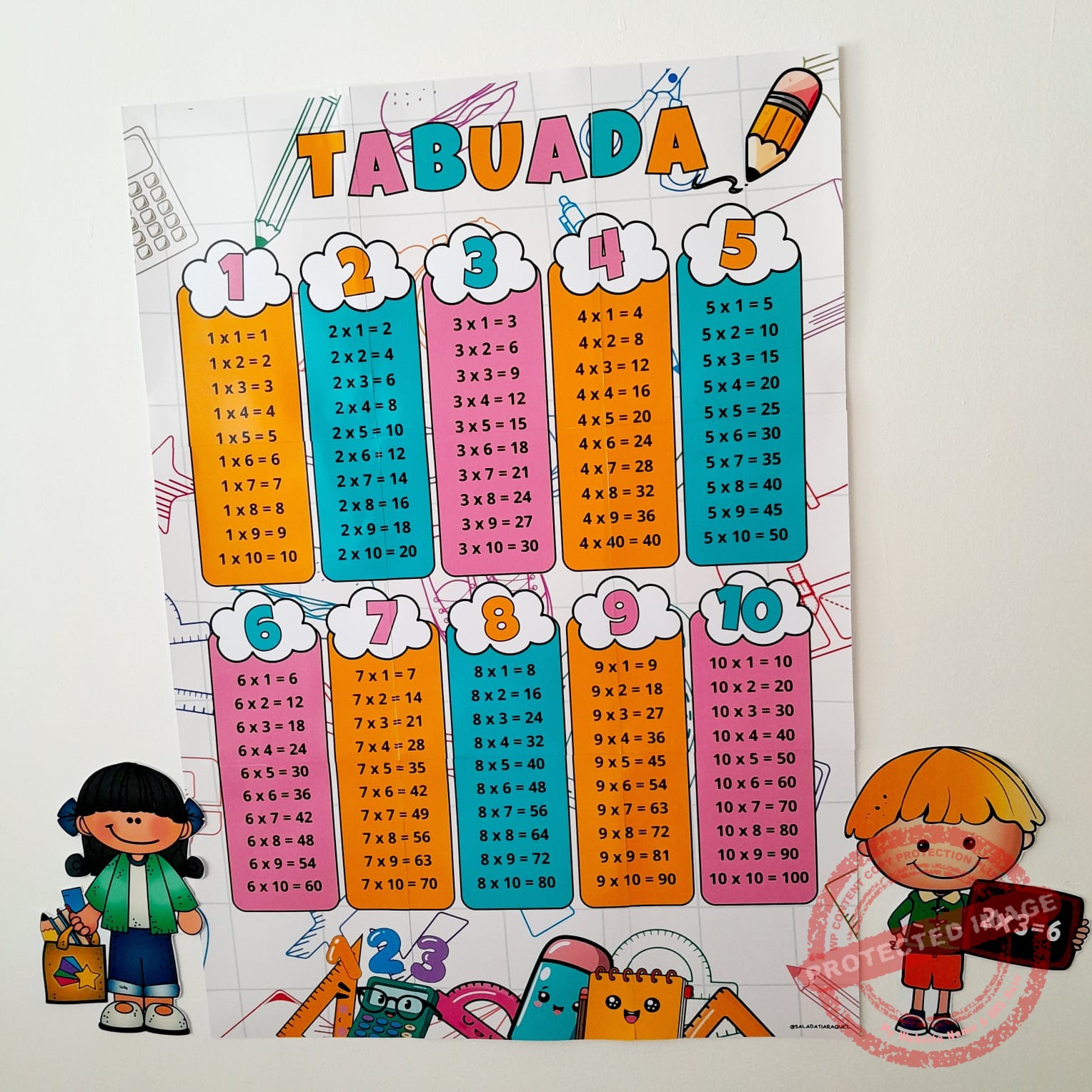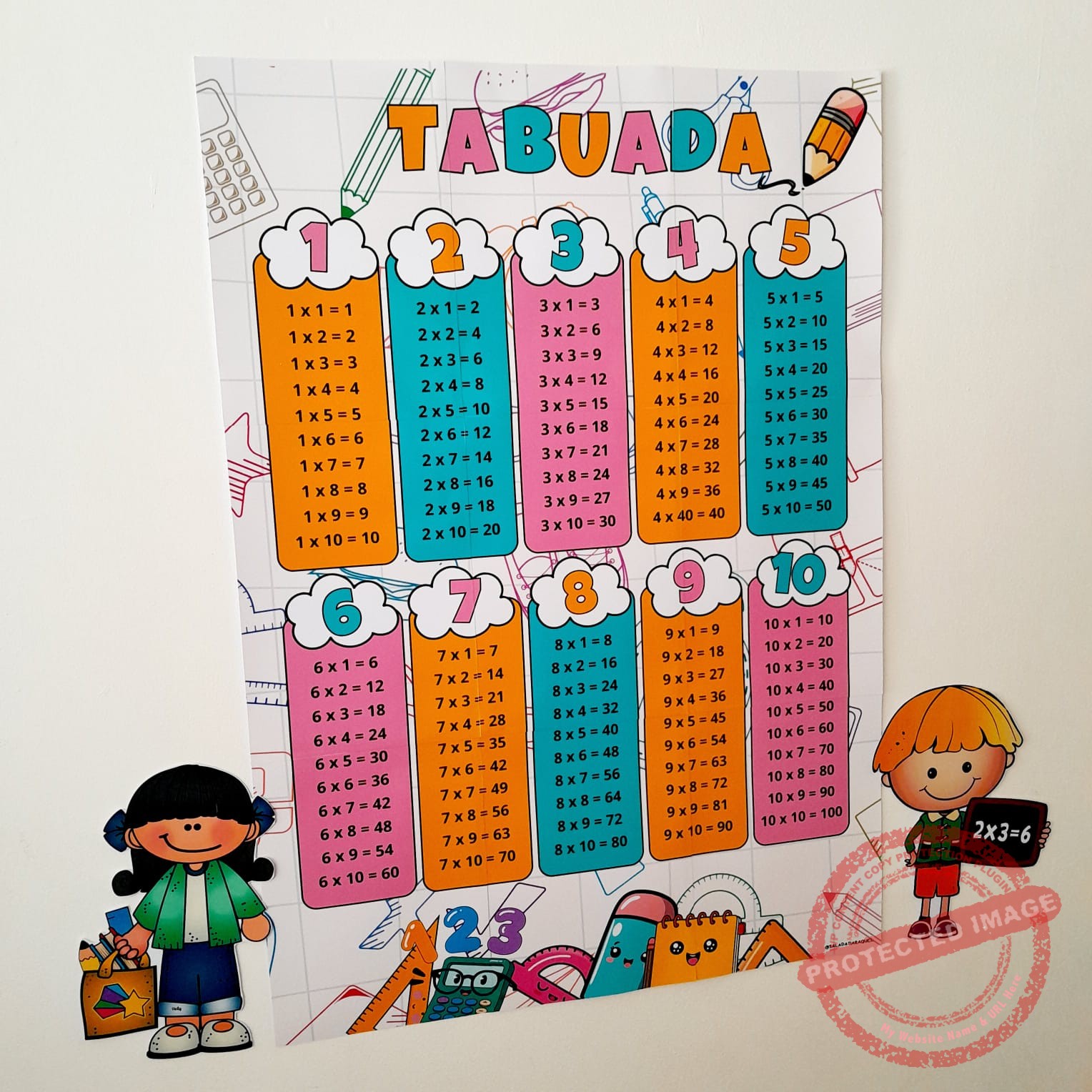 Tabuada de parede ideal para sala de aula.